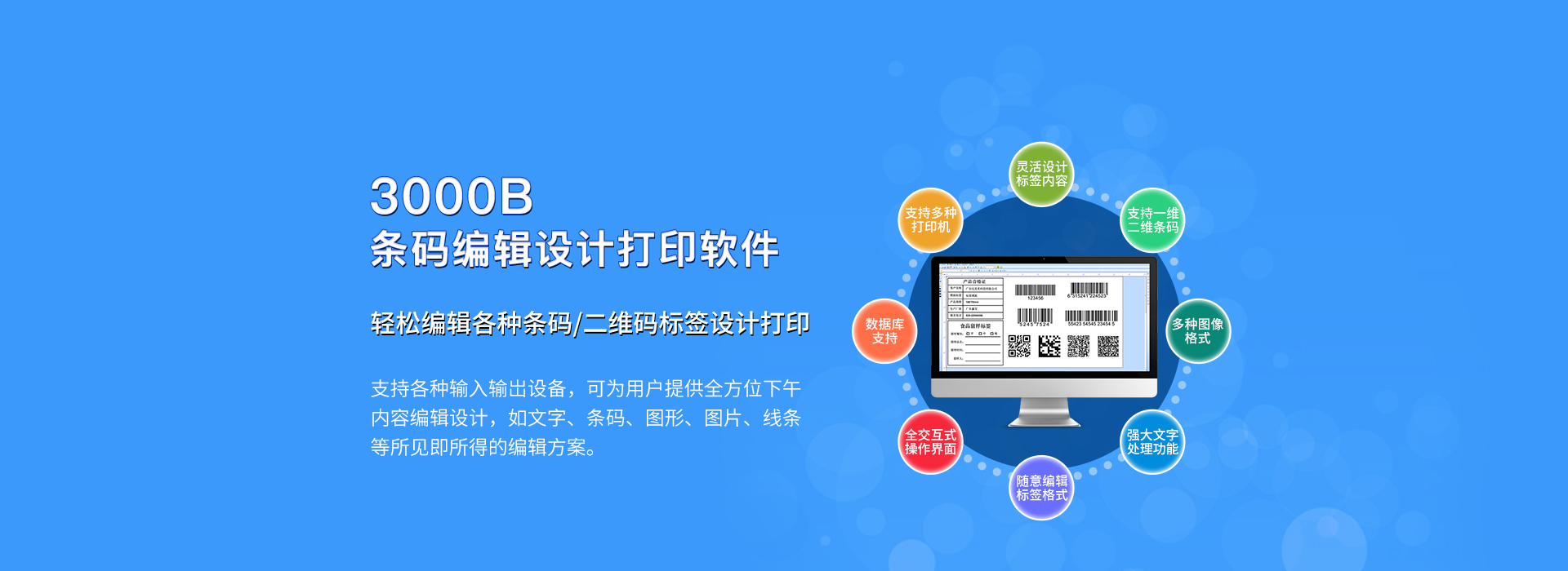 鑫寶3000B條碼編輯設計打印軟件,它的主要功能是進行條碼標簽設計輸出,支持Windows系統(tǒng)下所有普通條碼打印機、噴碼機、數碼印刷機及各種輸入輸出設備,支持多種常用的一維、二維條碼、支持多種數據源格式。